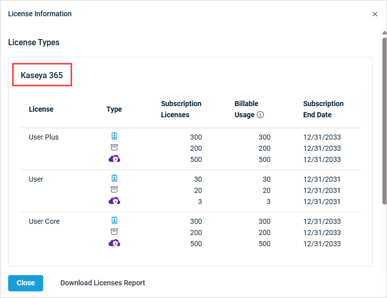 NOTE  Effective December 2025, Datto SaaS Protection transitioned to a Committed Minimum Quantity (CMQ) and variable consumption policy for standalone and legacy SaaS Protection subscriptions. This policy has replaced the previous high-watermark pricing approach. (Refer to Committed Minimum Quantity (CMQ) billing FAQs.) This change does NOT apply to Kaseya 365 User subscriptions.