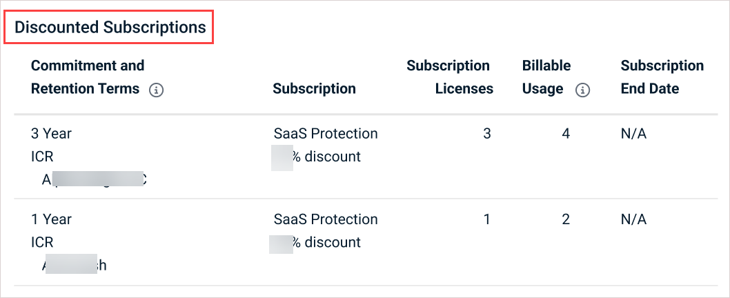 Subscription Licenses: The total number of licenses across all of your newer standalone SaaS Protection subscriptions, by license type.