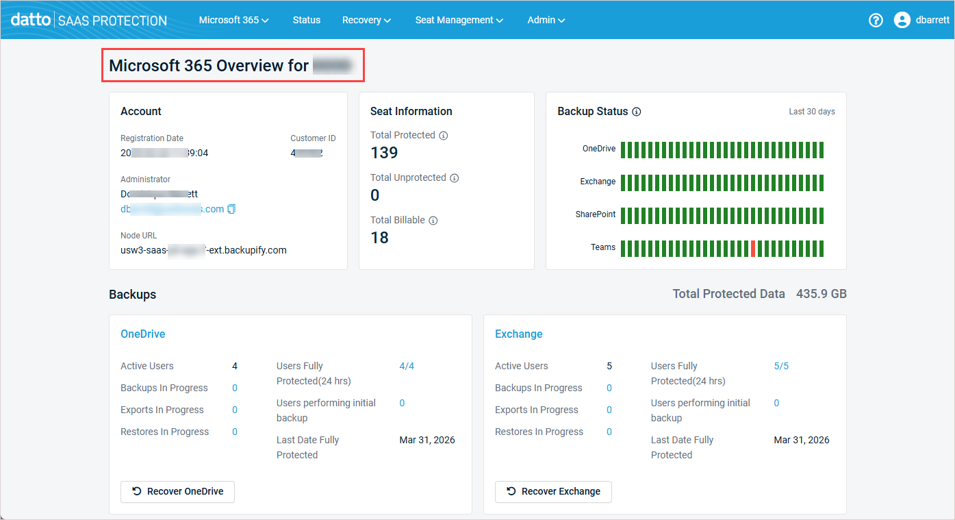 Datto SaaS Protection is reauthorized and you are returned to the Datto SaaS Protection UI.